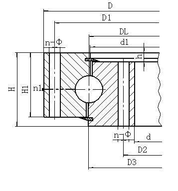 單排四點接觸球式回轉支承由兩個座圈組成,結構緊湊,重量輕,鋼球與圓弧滾道四點接觸,能同時承受軸向力,徑向力和傾翻力矩,回轉式輸送機,焊接操作機,中小型起重機和挖掘機等工程機械均可選用。