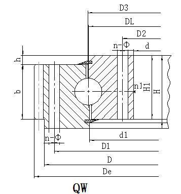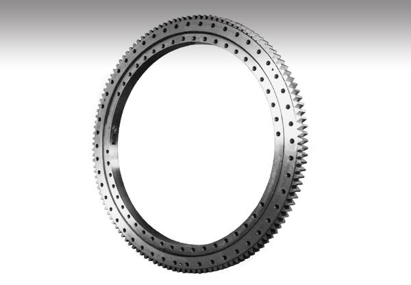 單排四點接觸球式回轉支承由兩個座圈組成,結構緊湊,重量輕,鋼球與圓弧滾道四點接觸,能同時承受軸向力,徑向力和傾翻力矩,回轉式輸送機,焊接操作機,中小型起重機和挖掘機等工程機械均可選用。