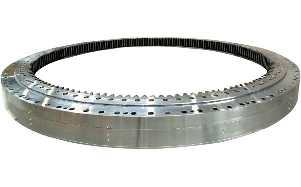 三排滾柱式回轉支承有三個座圈,上 下及徑向滾道各自分開,使得每一排滾柱的負載都能確切地加以確定。能夠同時承受各種載荷,是四種產品中承載能力很大的一種,軸、徑向尺寸都較大,結構牢 固,特別適用于要求較大直徑的重型機械,如斗輪式挖掘機、輪式起重機、船用起重機、港口起重機、鋼水運轉臺及大噸位汽車起重機等機械上。